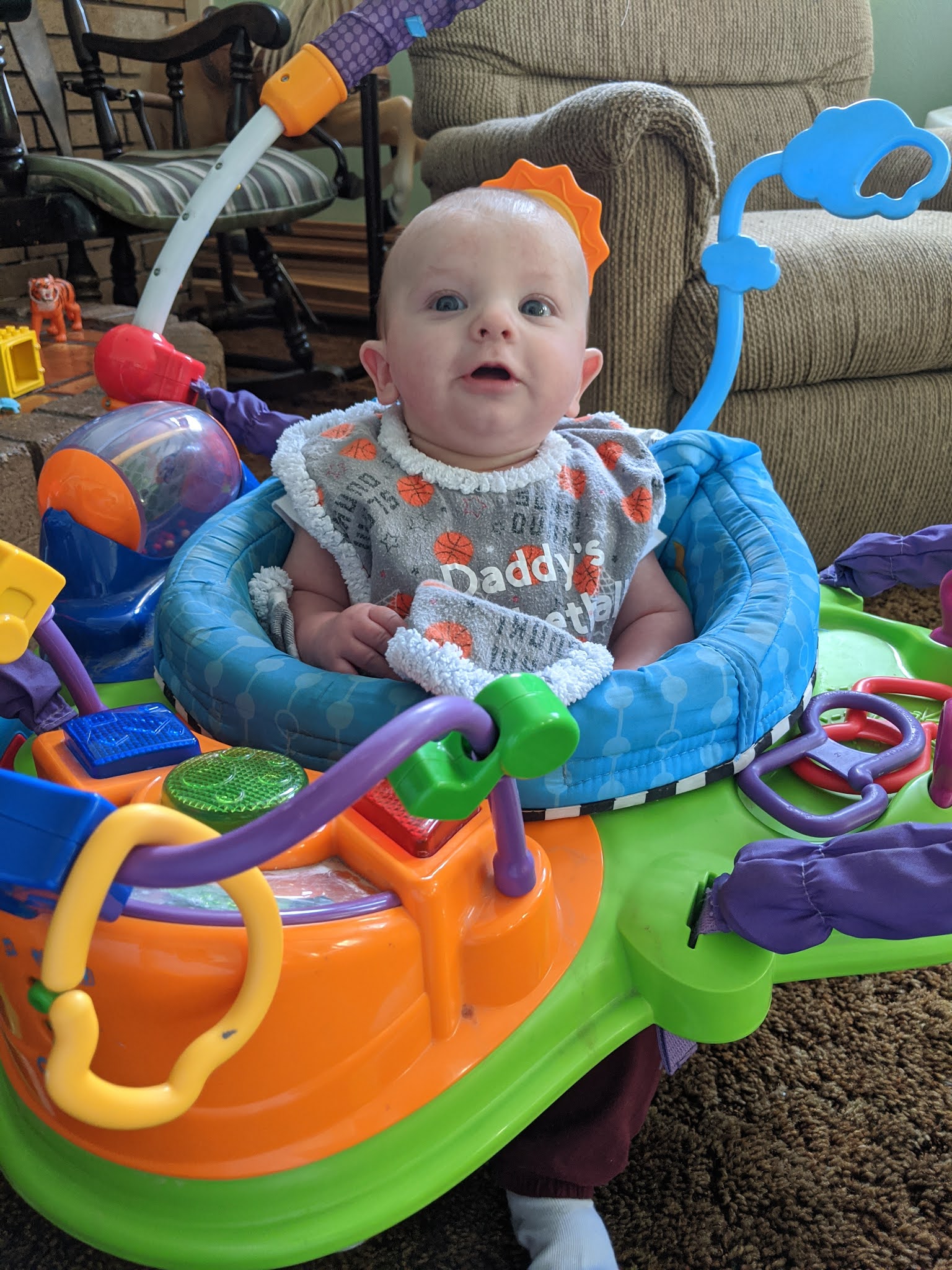 He loves this jumperoo! Tells us lots of stories while bouncing all around in it!
