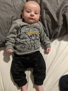 He is growing! His stretches at night are finally getting longer. Usually waking up anywhere from 5:00 a.m.-6:30 a.m.! Still loving his naps during the day!
