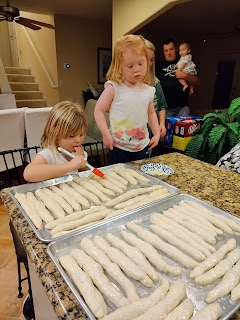 Camille helping butter the breadsticks!